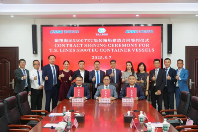 近日,中船集团旗下中船黄埔文冲船舶有限公司联合中船工业贸易有限公司,分别与亚太领先航运企业德翔海运(T.S.Lines)正式签署4艘5300TEU集装箱船建造合同、与ELBDEICH REEDEREI GMBH & CO. KG签署并生效2艘5100TEU集装箱船建造合同。