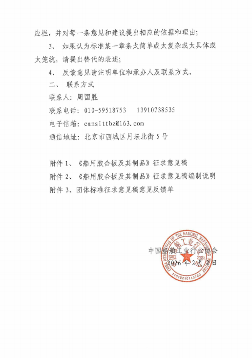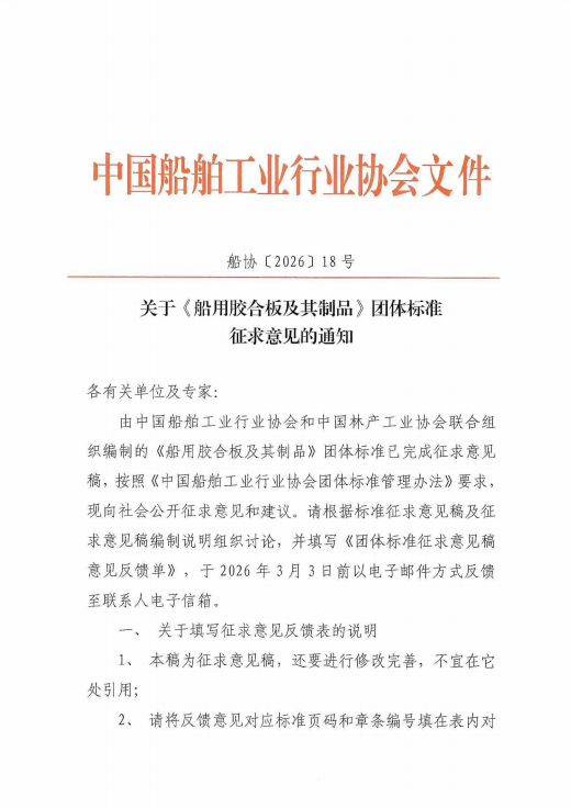 关于《船用胶合板及其制品》团体标准征求意见的通知