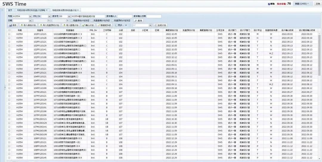 围绕公司生产准备管理体系,集配部、信息部、生产管理部、民海项目部、邮轮项目部、设计一部等联合策划推进“民/海/邮托盘计划”信息管理系统,打造以民/海/邮为对象的TIME物资托盘集配计划管理信息平台。经过前期大量的调研分析、需求策划、开发测试、培训等工作,“民/海/邮托盘计划”信息管理系统于6月初正式全面上线应用。目前系统已在大型邮轮、集装箱船、散货轮、油轮等实船开始应用,基本构建公司安装托盘/原材料托盘计划自动生成策略。