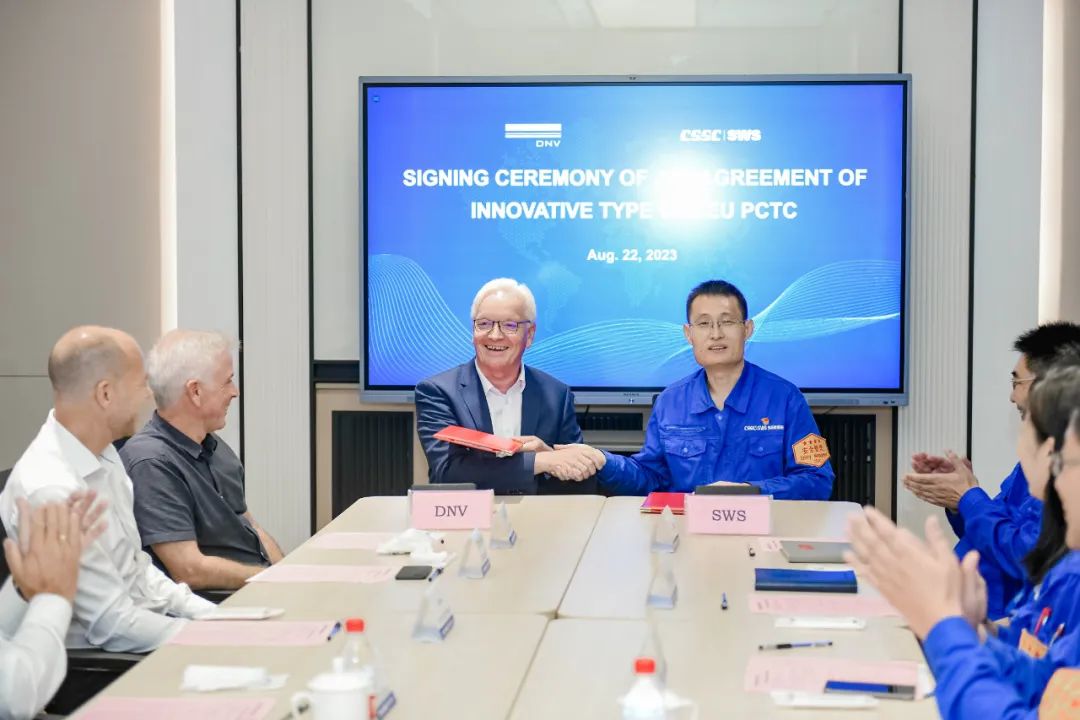 ,受到公司董事长王琦、副总经理张启鹏热情接待。双方共同签署了14000TEU甲醇双燃料集装箱船和创新型9000车PCTC船合作开发协议,并就进一步加强合作进行了友好交流。