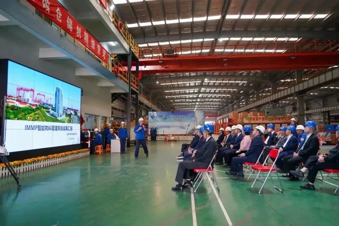 升旗仪式结束后,公司历任老领导在王琦、陈刚和经理班子成员陪同下,现场参观了薄板中心、集配中心、国产首艘大型邮轮以及公司展厅。在随后的座谈会上,老领导纷纷对公司取得的佳绩表示肯定,并对公司进一步高质量转型发展提出宝贵的意见建议。