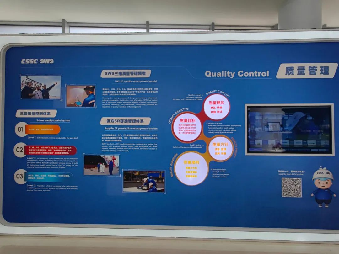 新展厅增加了13.5平方米的LED屏幕,除了可播放公司系列宣传片以外,更有由公司信息部自主开发的“数说外高桥”及“船舶AIS系统”,全面展现了公司在数字化转型与创新发展的各项成果,并能直观地展示从建厂以来麻豆社 所有交付的船舶海工产品的所在位置及信息。