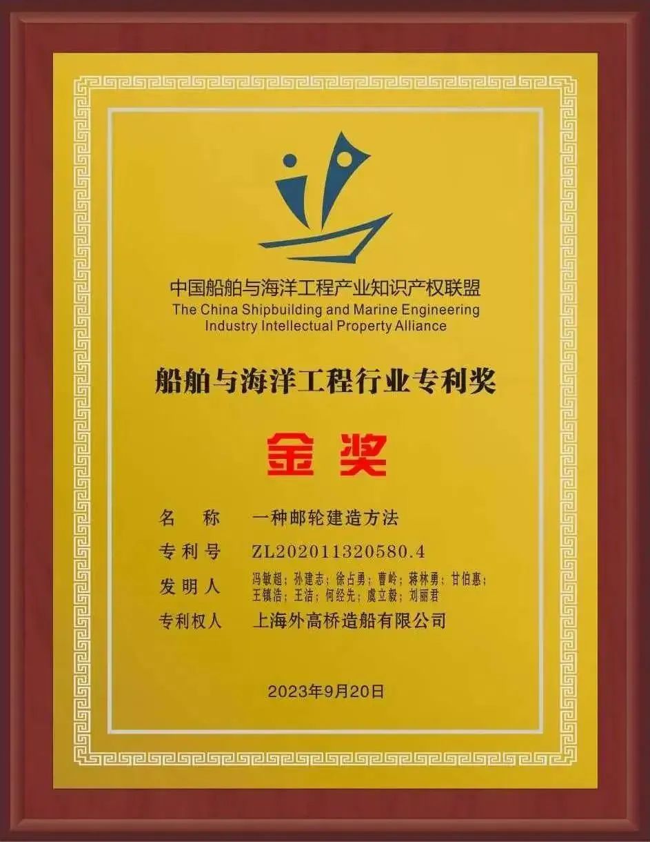 自2018年荣获首届船舶与海洋工程行业专利奖金奖以来,公司已连续六届荣获该殊荣,共获金奖8项、优秀奖11项。