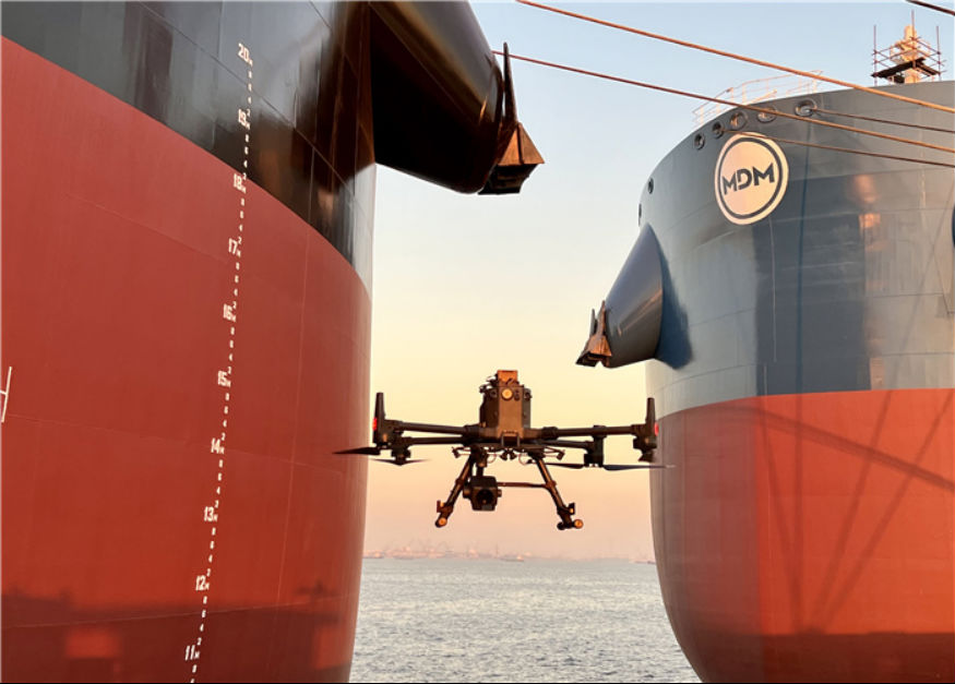2021年10月27日,公司联合中国船级社(CCS)顺利完成了21万吨散货船空船称重项目的无人机试点检验,迈出了船舶数字化检验的关键一步。截至目前,无人机“飞检”模式已经在大型邮轮、21万吨纽卡斯尔型散货船、15.8万吨苏伊士原油轮、11.9万吨阿芙拉型双燃料成品油轮、230万桶“通用型”FPSO等船型领域落地应用,累计应用近20次,无人机“飞检”技术不断成熟完善。